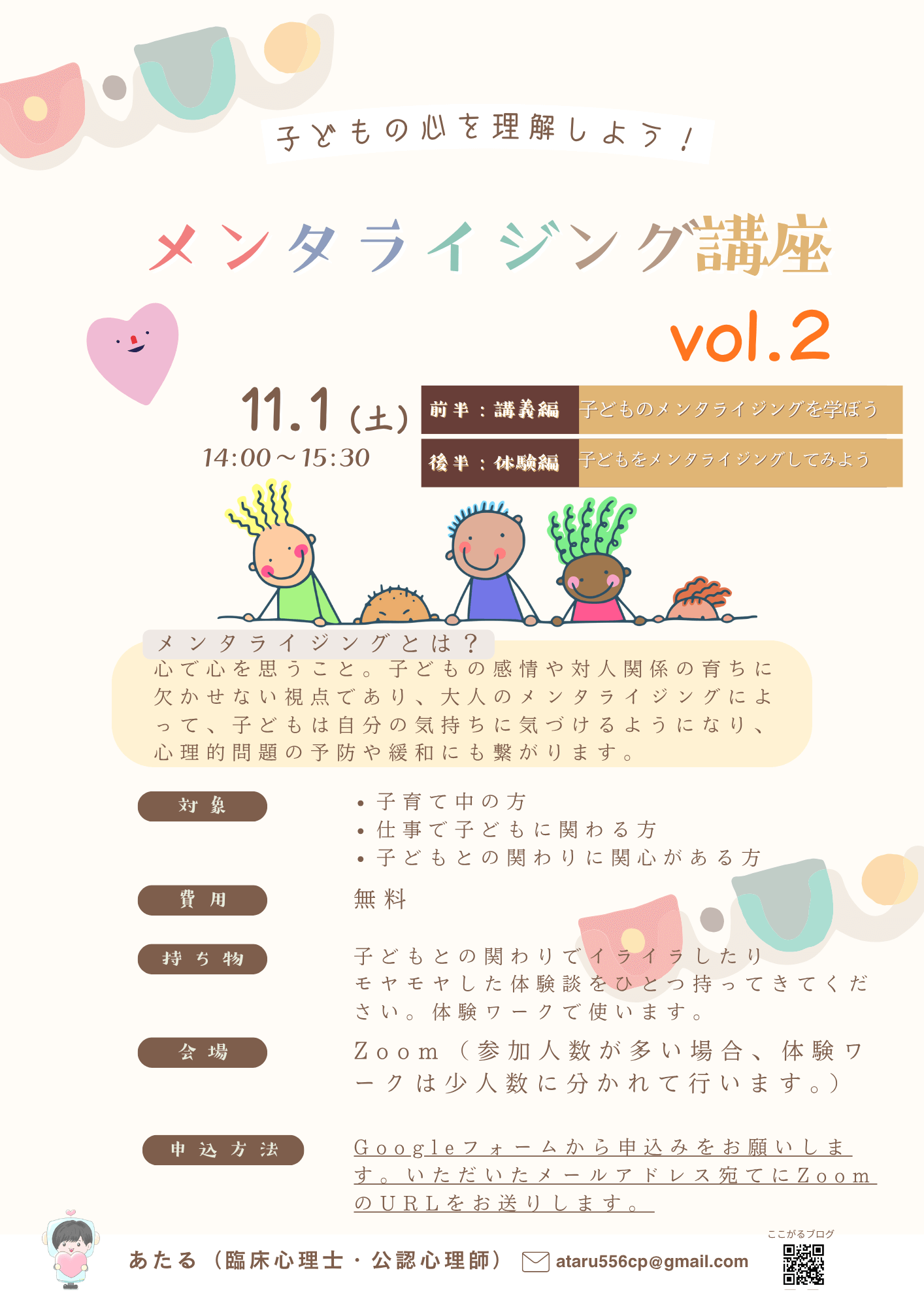 「メンタライジングで子どもの心を理解しよう!」第2弾を開催します!